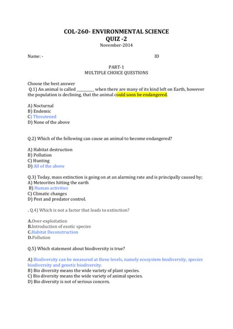 Read environmental science quiz questions and answers Doc Google eBookstore